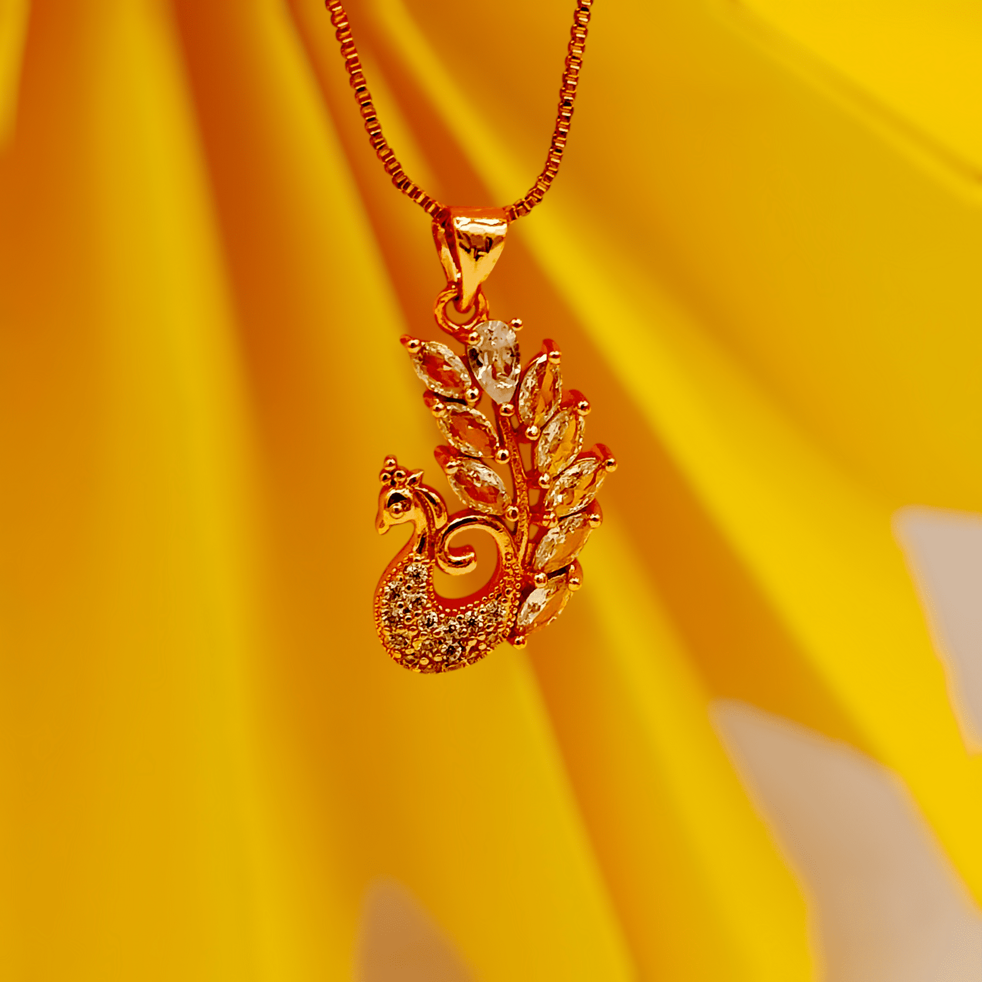 The China Gold Zircon Peacock Locket combines exquisite craftsmanship with radiant elegance. Featuring shimmering zircon stones set in a graceful peacock design, this locket offers a captivating shine that enhances any outfit. Its intricate detailing and durable gold finish make it a timeless accessory, perfect for those seeking both beauty and lasting quality.